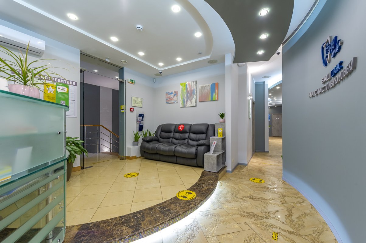 Очень хорошая клиника. Есть комната для детей, поиграть чтоб не скучали и не волновались, ожидая приема. Красивый интерьер, уютные диваны.